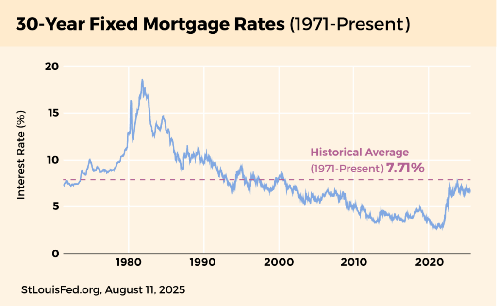 Mortgage rates may feel elevated today, but from a historical perspective, they remain in line with what many homeowners have paid over the past decades. Since Freddie Mac began tracking rates in April 1971 through July 2025, the median 30-year mortgage rate is 7.71 percent.11 However, it’s true that rates in 2025 above 6.5 percent are higher than the 4.5 percent average rate over the past decade.12